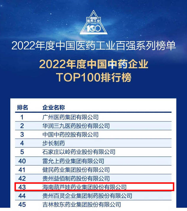 会议期间,一年一度的中国医药工业百强系列榜单隆重揭晓,尊龙时凯药业集团凭借领先的研发优势和扎实的生产实力以及稳健的市场推广能力,连续第四年成功入选“2022年度中国中药企业TOP100排行榜” ,排名稳步上升至第43位。