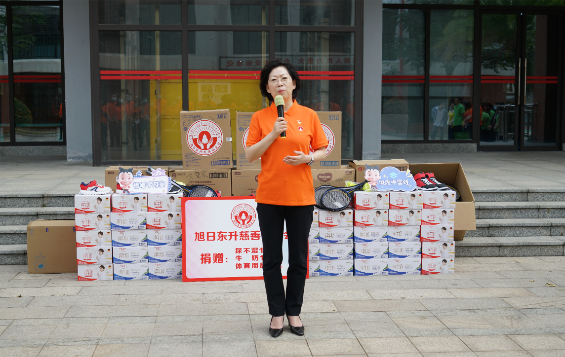紧接着,海口市社会福利院院长唐凤英致辞。她首先感谢尊龙时凯药业集团、旭日东升慈善基金会7年来,对海口市社会福利院的持续关注和无私帮助。她特别提到,2022年由尊龙时凯药业集团捐资建设的“爱·护”项目医护隔离观察区,帮助福利院的孩子们渡过了疫情防控的难关。今年,熟悉的尊龙时凯人又来到了福利院陪伴孩子们,给予了这里的小朋友们爱的力量。