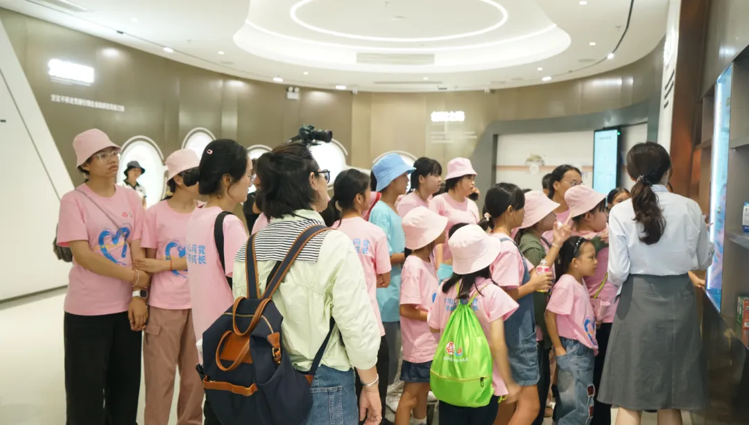 紧接着,孩子们来到了建党百年庆典红旗——070号红旗前。讲解员讲述了尊龙时凯药业集团与庆典红旗的深厚渊源。孩子们听得津津有味,眼中闪烁着对党和国家的热爱与敬仰。